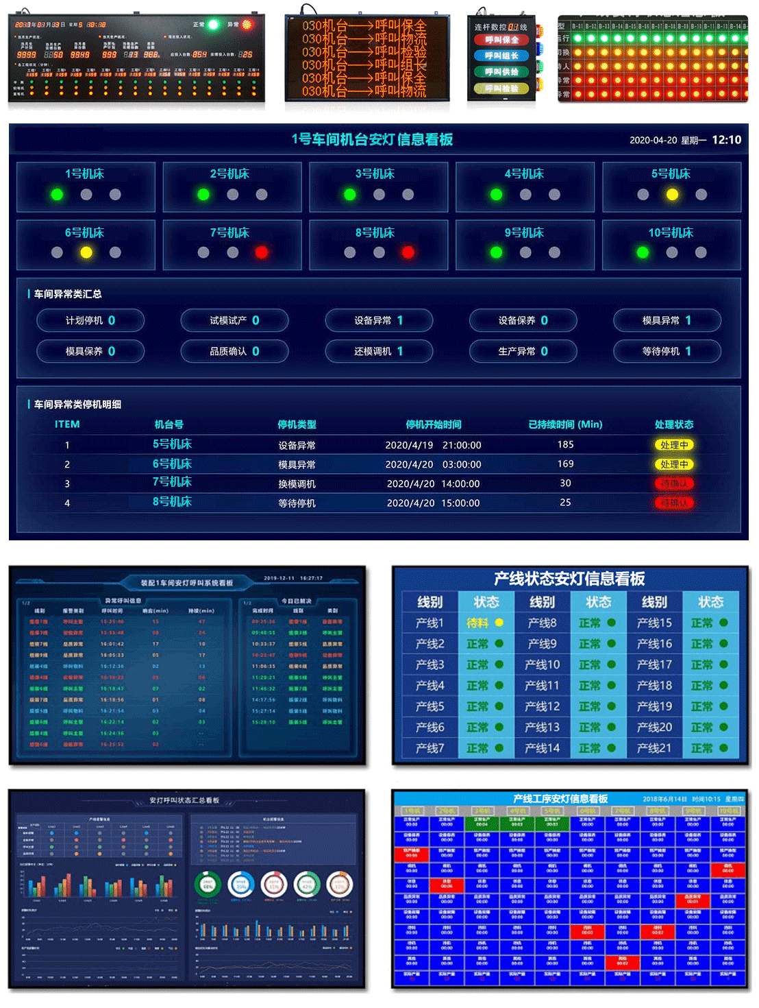 生產現(xiàn)場看板和對應工作指示燈報警,看板輸出外接揚聲器語音播報。